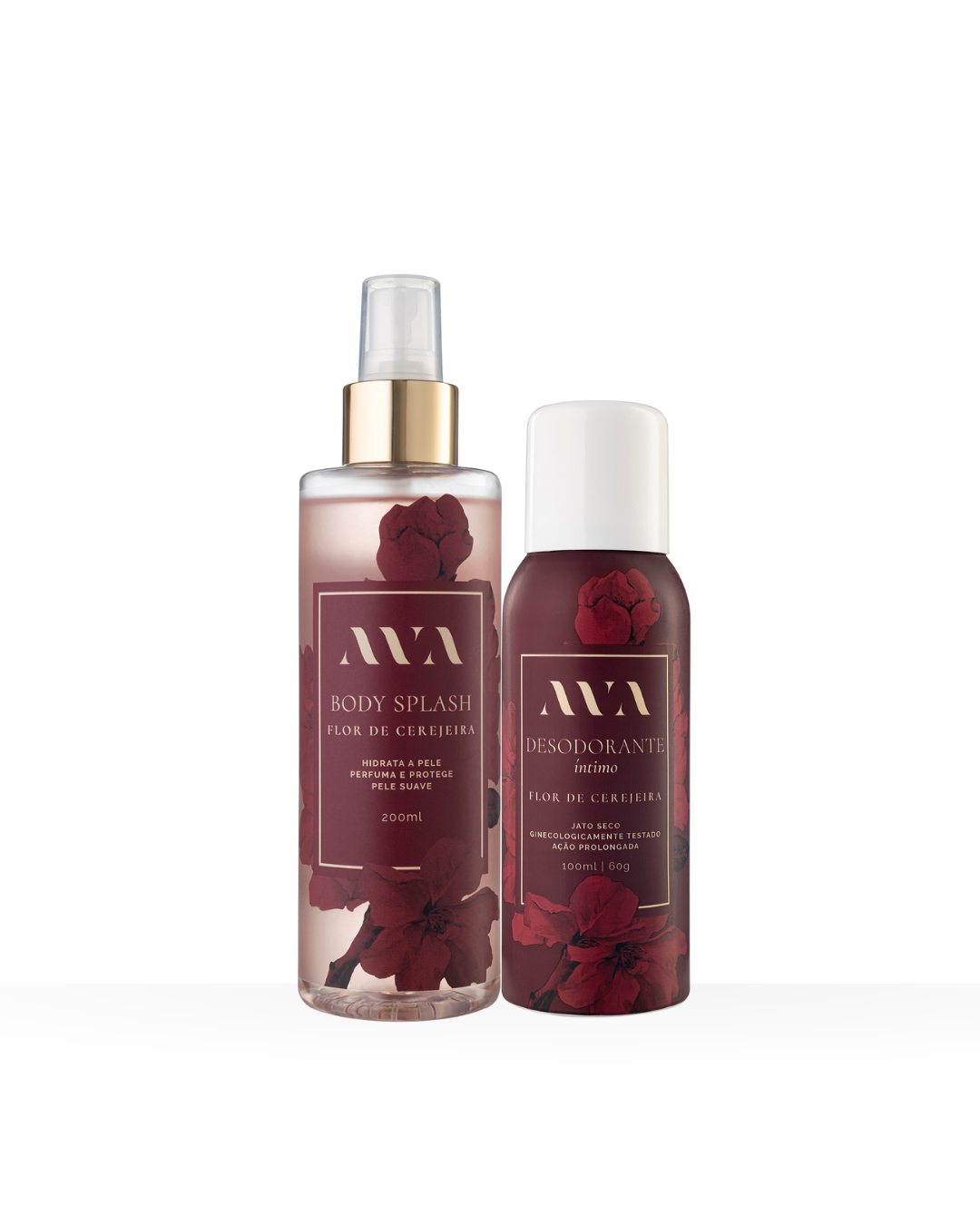 O Kit Você cheirosa o dia todo– Flor de Cerejeira A dupla perfeita para quem ama se sentir fresca, perfumada e confiante o dia inteiro. Este kit reúne cuidado íntimo delicado com perfume corporal suave e envolvente, criando um ritual diário que acompanha sua rotina e sua energia. O Desodorante Íntimo AVA oferece frescor prolongado, cuidado gentil e sensação de limpeza, mantendo a pele confortável, equilibrada e protegida. Já o Body Splash envolve o corpo com uma fragrância leve, feminina e marcante, deixando um rastro suave de perfume e bem-estar. Uma combinação que celebra a feminilidade em sua forma mais leve e radiante.